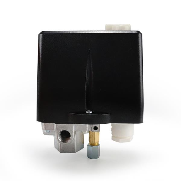 LF12系三相空氣壓力開(kāi)關(guān),用于三相電驅(qū)動(dòng)的空氣壓縮機(jī)或水泵,調(diào)節(jié)空氣壓縮機(jī)氣罐的壓力或水泵系統(tǒng)的水壓,使之在兩個(gè)預(yù)設(shè)的上、下壓之間自動(dòng)循環(huán)運(yùn)轉(zhuǎn)。開(kāi)關(guān)帶有卸荷閥,可使空氣壓縮機(jī)的電機(jī)避免過(guò)載啟動(dòng),手動(dòng)開(kāi)關(guān)旋鈕可用來(lái)手動(dòng)切斷空氣壓縮機(jī)或水泵運(yùn)轉(zhuǎn),四通接座可使壓力表、安全閥等空氣壓縮機(jī)配件安裝更為簡(jiǎn)易。同時(shí)該開(kāi)關(guān)自身帶有過(guò)載保護(hù)熱繼電器,當(dāng)電機(jī)出現(xiàn)過(guò)載運(yùn)行時(shí),熱繼電器跳開(kāi)動(dòng)作,及時(shí)切斷電機(jī)電源,防止電機(jī)燒毀。
