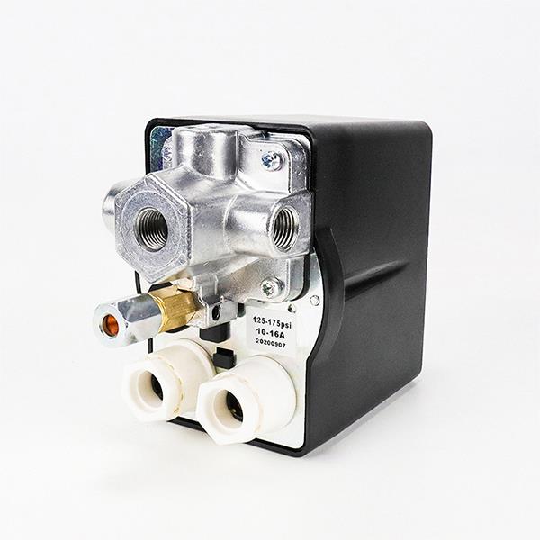 LF12系三相空氣壓力開(kāi)關(guān),用于三相電驅(qū)動(dòng)的空氣壓縮機(jī)或水泵,調(diào)節(jié)空氣壓縮機(jī)氣罐的壓力或水泵系統(tǒng)的水壓,使之在兩個(gè)預(yù)設(shè)的上、下壓之間自動(dòng)循環(huán)運(yùn)轉(zhuǎn)。開(kāi)關(guān)帶有卸荷閥,可使空氣壓縮機(jī)的電機(jī)避免過(guò)載啟動(dòng),手動(dòng)開(kāi)關(guān)旋鈕可用來(lái)手動(dòng)切斷空氣壓縮機(jī)或水泵運(yùn)轉(zhuǎn),四通接座可使壓力表、安全閥等空氣壓縮機(jī)配件安裝更為簡(jiǎn)易。同時(shí)該開(kāi)關(guān)自身帶有過(guò)載保護(hù)熱繼電器,當(dāng)電機(jī)出現(xiàn)過(guò)載運(yùn)行時(shí),熱繼電器跳開(kāi)動(dòng)作,及時(shí)切斷電機(jī)電源,防止電機(jī)燒毀。